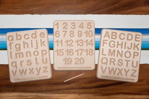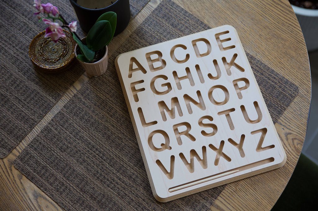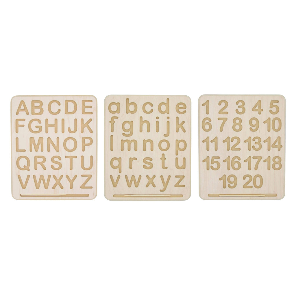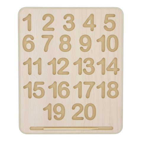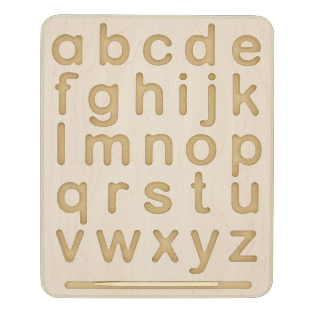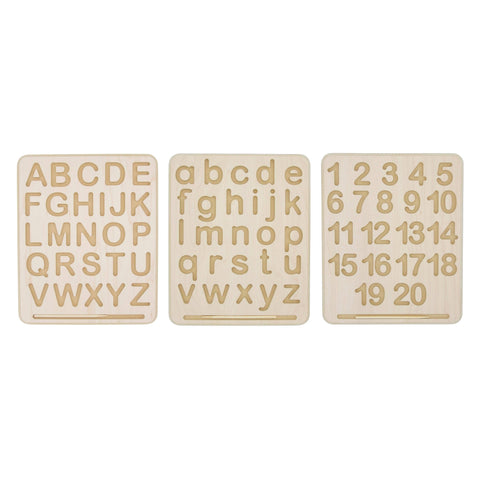 Children can practice proper number formation and develop their writing skills with this hands-on, wood alphabet tracing board. Younger children can simply use a finger to begin learning how to trace the letters, while older children who are ready for writing can use the included wooden stylus to develop the hand and finger strength required for a proper pencil grip. Perfectly sized to fit in a child’s lap, and lightweight enough for easy transport. Complete with a convenient groove for storing the stylus.